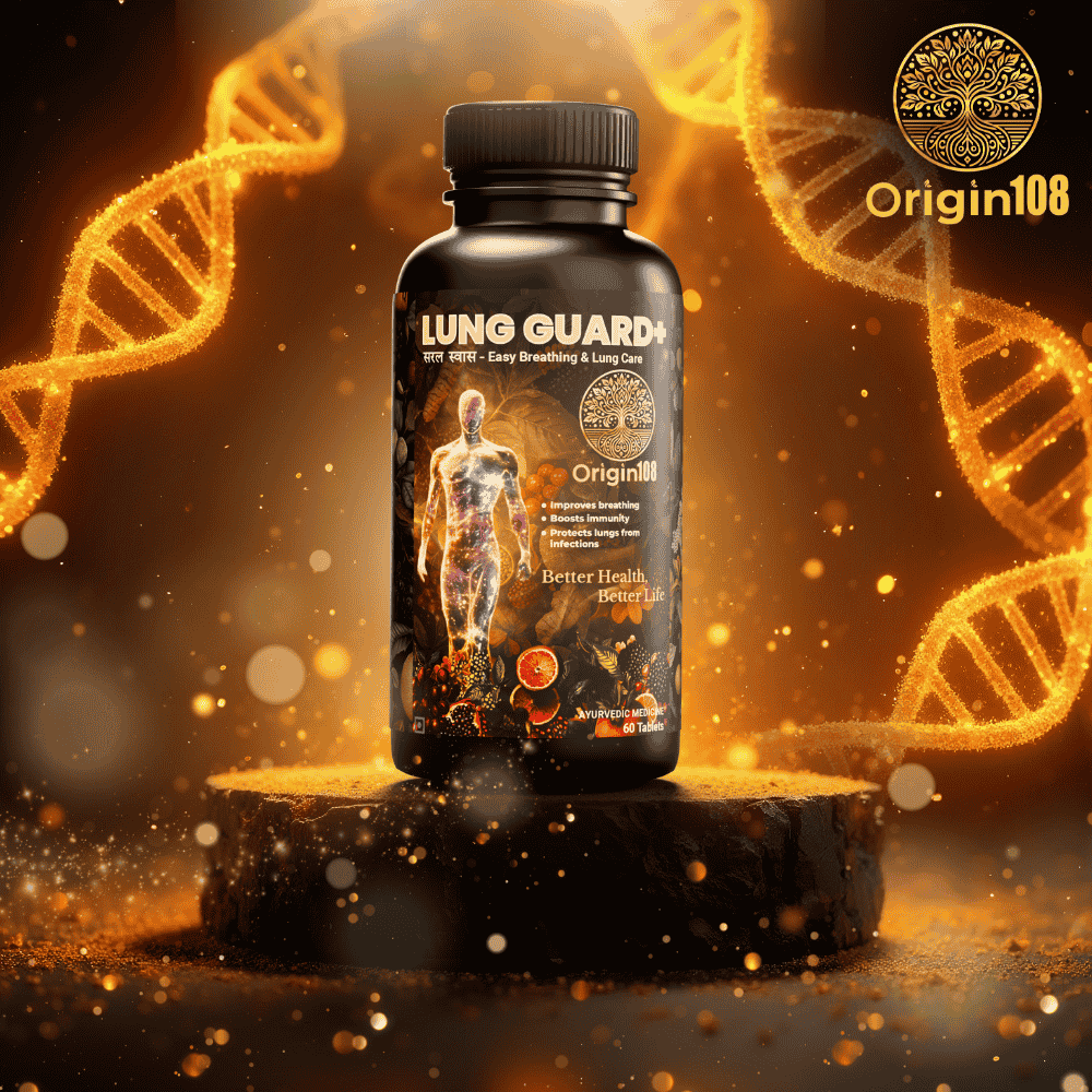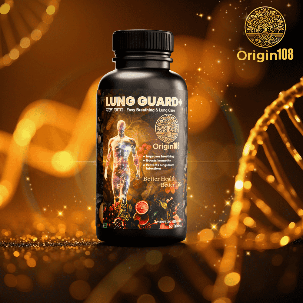 Introducing Lung Guard+ by Origin108, a powerful herbal formulation designed to support lung health, enhance respiratory function, and strengthen the immune system. This unique blend features Vasaka, Tulsi, Pippali, Licorice, and Kantakari—a combination of potent Ayurvedic herbs known for their ability to clear the airways, soothe respiratory discomfort, and protect against environmental pollutants.
