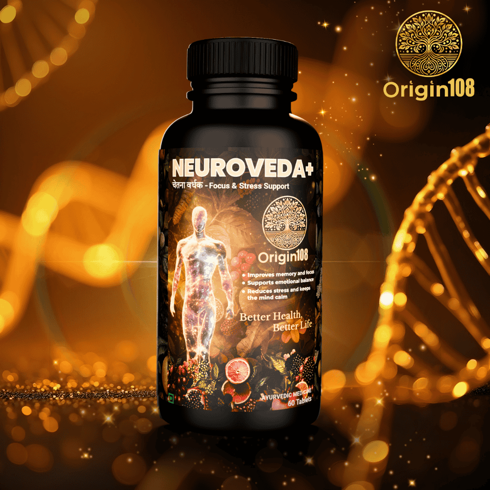 Introducing Neuroveda+ by Origin108, a premium Ayurvedic formulation designed to enhance cognitive function, reduce stress, and promote overall mental well-being. Crafted with five of nature’s most revered adaptogenic and nootropic herbs—Brahmi, Ashwagandha, Shankhpushpi, Jatamansi, and Gotu Kola—this potent blend nurtures your mind and body, helping you achieve clarity, focus, and emotional balance.